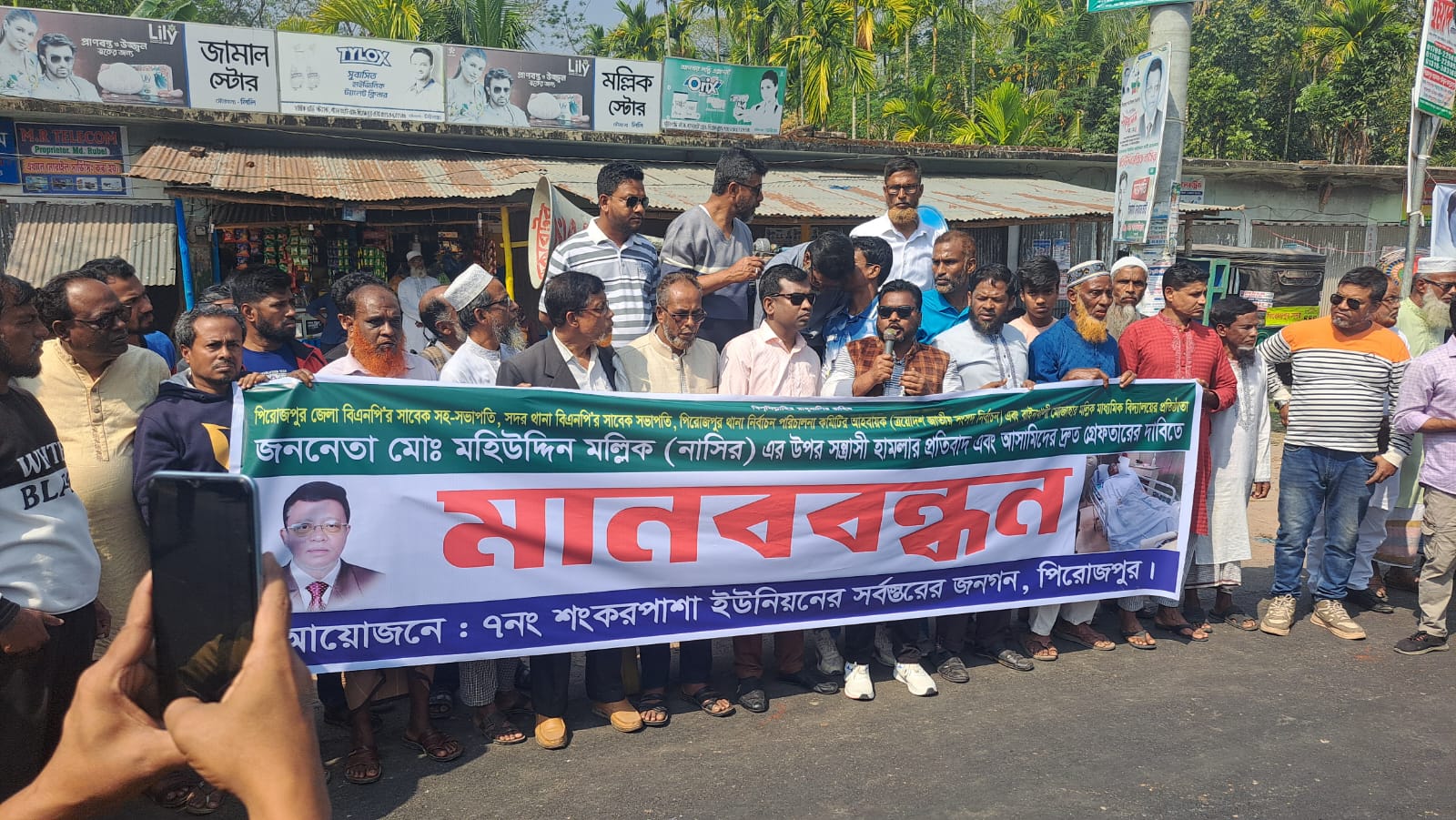 পিরোজপুরে বিএনপি নেতার ওপর হামলার প্রতিবাদে মানববন্ধন, গ্রেফতারের আল্টিমেটাম
